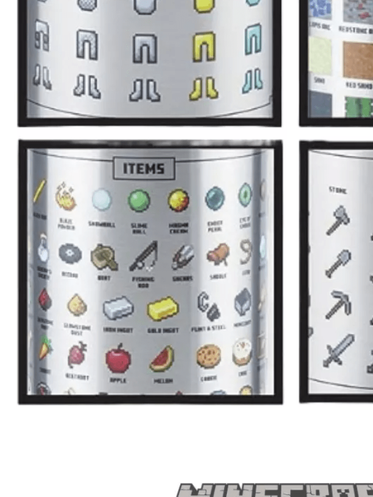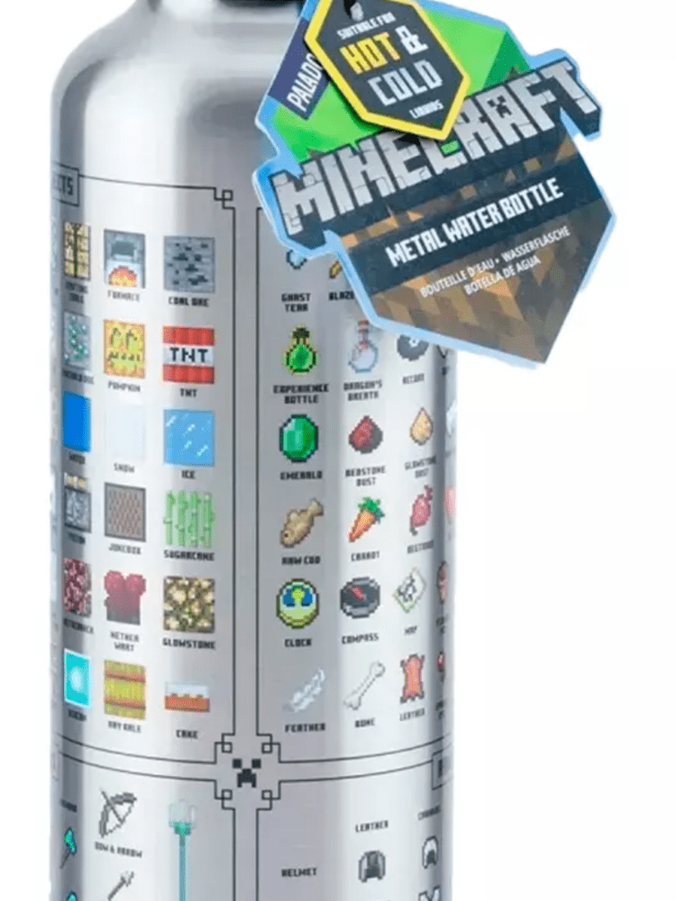 Minecraft-themed water bottle: this 16.9 fl oz double-walled stainless steel water bottle features iconic Minecraft designs including weapons, armor, blocks and more.