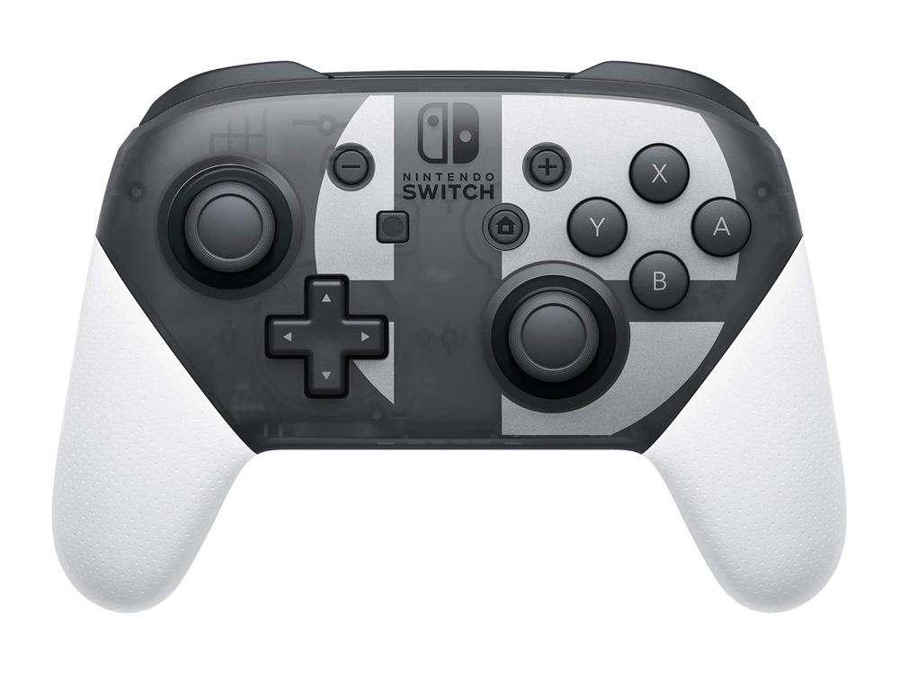 Take your game sessions up a notch with the Nintendo Switch Pro Controller a specially designed to team up with Super Smash Bros. Ultimate. This Pro Controller features a unique color scheme, alongside the iconic Super Smash Bros. logo across the front and white handles.