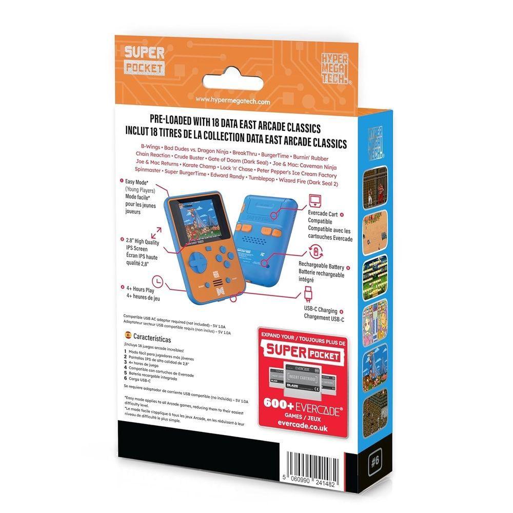 Carry the ’80s arcade in your pocket with the HyperMegaTech! Super Pocket Data East Edition! Features 18 arcade hits just as you remember them, including BurgerTime, BadDudes vs. DragonNinja, Joe&Mac: CavemanNinja and more.