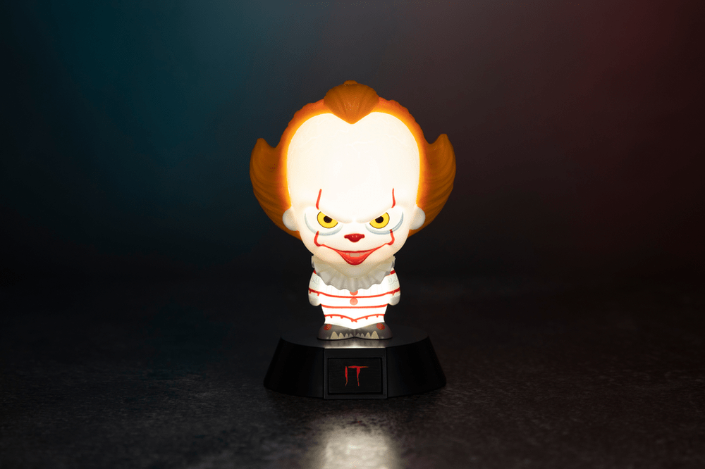 Ideal for lovers of the Stephen King novel IT and its film adaptations, this free sanding light features a cartoon figure of Pennywise the Clown on a black plinth with the IT logo on its front.