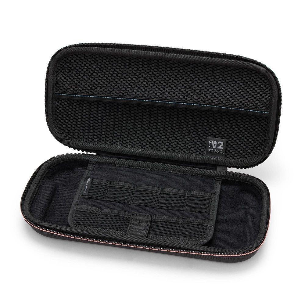Inside you’ll find a felt lining, screen-protector flap with storage for nine game cards, logo tag and zippered mesh storage pocket. This portable case gives you the freedom to have fun on the go with your Nintendo Switch. Wherever. Whenever.