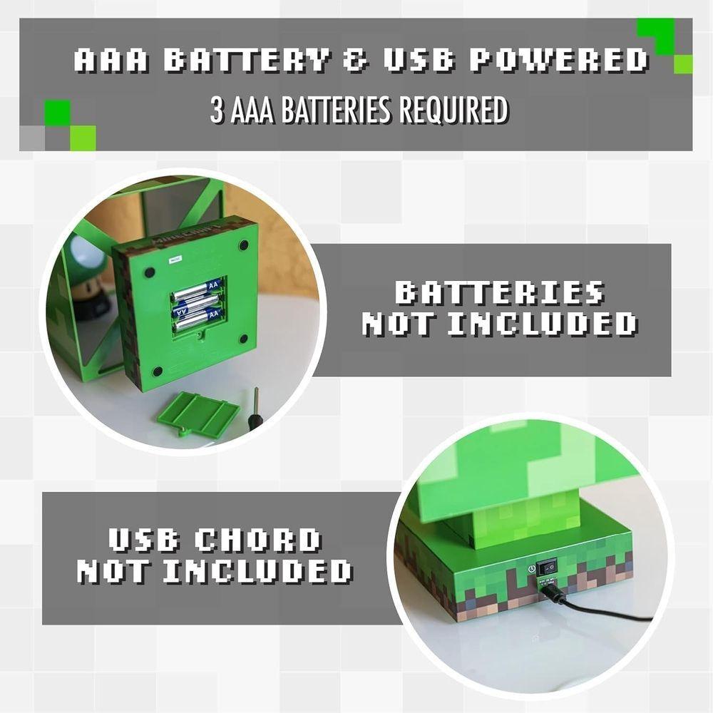 Creeper won't chase anyone )))) With three different light settings and a 20 minute auto shut-off feature, this Minecraft Creeper Icon Lamp will help your child fall asleep. Designed with details that match the famous pixel video game known and loved all over the world, this lamp has an impressive height of 26.6 cm and is powered by USB or 3 AA batteries. (not included), so it can be placed anywhere. The lampshade of this lamp comes complete with an LED bulb. This is a great gift for any Minecraft fan or player ages 6 and up.
