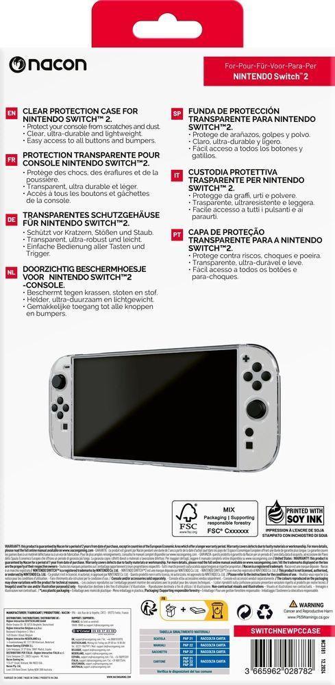 The Nacon Polycarbonate Hardcase is a protective case for the Nintendo Switch 2 console, made of durable yet lightweight polycarbonate. It offers scratch and impact protection, a clear and stylish design, precise cutouts, and a soft interior lining for cushioning when carried. Its slim profile makes it easy to slip into bags and backpacks, while the clear case preserves the console’s appearance.