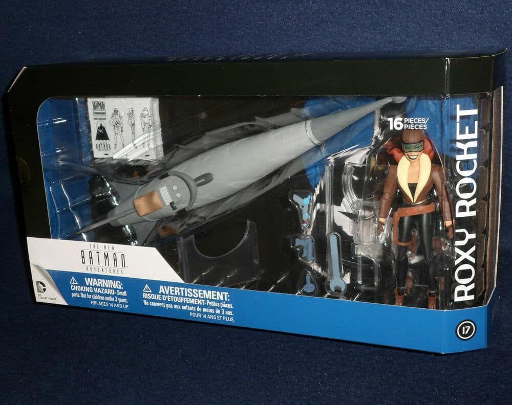 Esimest korda saad selles deluxe-figuuripakendis omada Roxy (14 cm 6″ tolli pikk) ja tema kuulsat raketti (31 cm üle 12″ tolli pikk). Figuuriga on kaasas näitusespetsiifilised tarvikud, Display alus ja rakett koos töötavate tuledega (2 x LR44 patareid on vajalikud, ei kuulu komplekti). The New Batman Adventures on Ameerika superkangelaste animeeritud telesari, mis põhineb DC Comicsi superkangelasel Batmanil ja mida näidati Kids WB-s 13. septembrist 1997 kuni 16. jaanuarini 1999. Roxy Rocket on koomiksite superkurjategija. Roxy loodi algselt 1994. aastal DC Comics’i poolt välja antud sarja The Batman Adventures Annual #1 jaoks, mis põhines Batman: The Animated Series’il. Roxy lisati The New Batman Adventures’ile episoodis „The Ultimate Thrill”, mida esmakordselt näidati 14. septembril 1998. aastal.