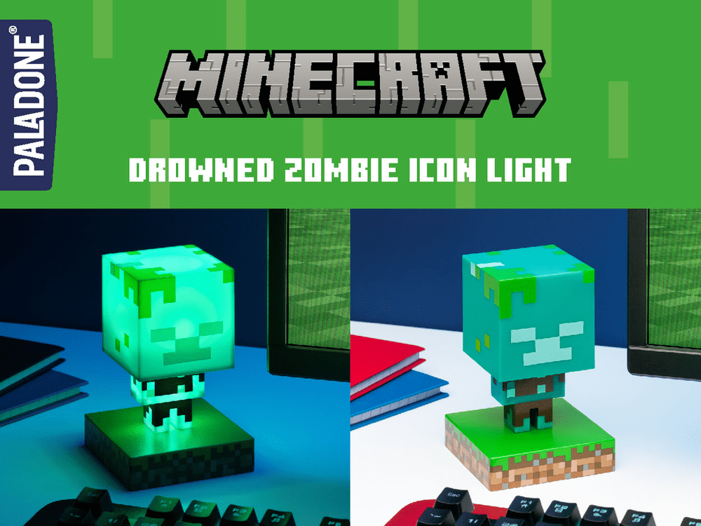 Add a soft, warm glow to any space with this Drowned Zombie Icon Light. The 11.8cm (4.5″) tall icon light is shaped like one of the Drowned from Minecraft. It’s designed to resemble the hostile, underwater variants of the iconic Zombie from the game. Turn it on to cast an…