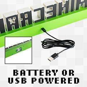This Minecraft logo light fixture is the perfect gift for any fan of the famous pixel video game. It will add a playful atmosphere and brighten up any bedroom, room or decorate a workspace. In addition, any collector of official Minecraft memorabilia would welcome this as the centerpiece of their collection. This amazing lamp can either be powered by the included USB cable, or batteries can be used for complete portability. The lamp has two lighting modes: you can choose either phase on or pulse light effects, and it can also be mounted on a wall.