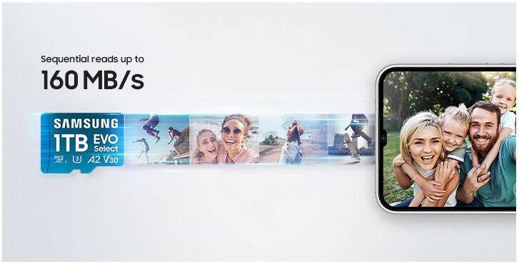 READ/WRITE SPEEDS UP TO 160 MB/s: The EVO Select is ready to save real-time moments with ultrafast transfer speeds of up to 160 MB/s; Transfer everything instantly and capture each memory as it comes with an SD that keeps up with your real life¹