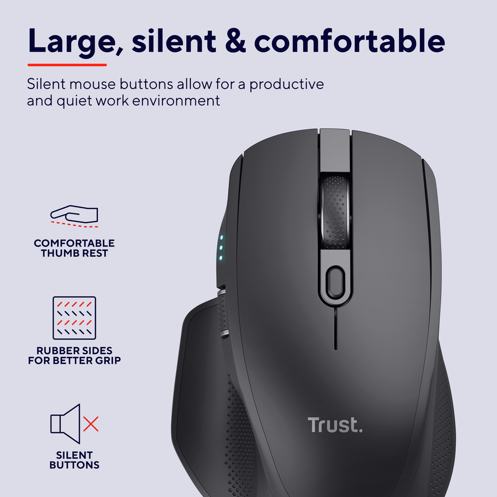 Always be in the know about your mouse’s battery life thanks to its 3 LEDs which clearly indicate how much